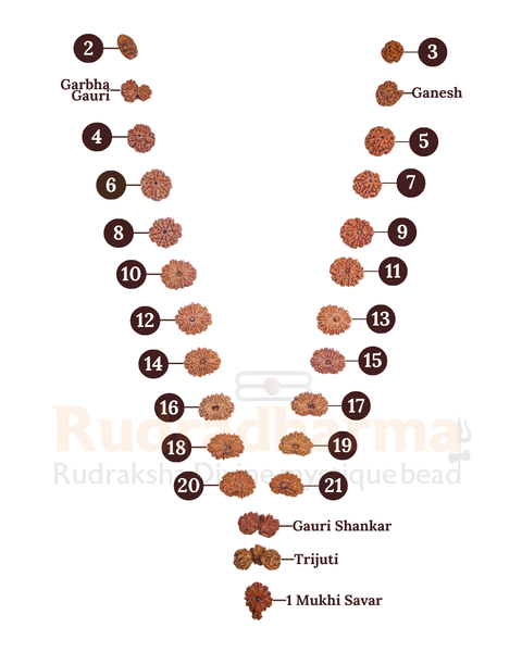 Indra Mala - 1 Mukhi to 21 Mukhi Rudraksha Mala